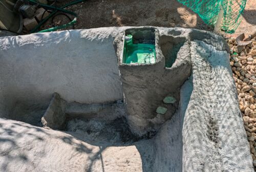 庭池のリニューアル。庭にモルタルで池を作る(③濾過装置製作・設置)